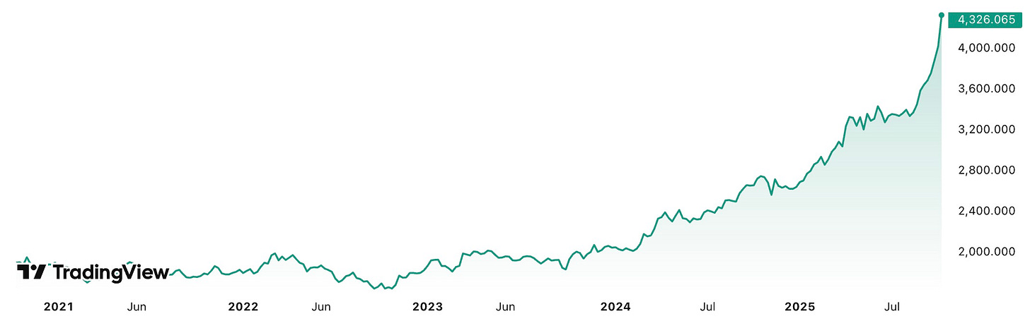This mindset has reshaped corporate behavior as well. Companies, confident that credit will remain cheap and plentiful, used debt not to invest productively but to repurchase their shares, shrinking equity floats and boosting earnings per share. This financial engineering, which is currently running at a record pace, helps drive valuations higher, reinforcing the illusion that fundamentals were improving. In reality, liquidity is doing the heavy lifting. The absence of meaningful corrections gave investors an unbroken string of positive reinforcement, a psychological loop that made risk feel optional.